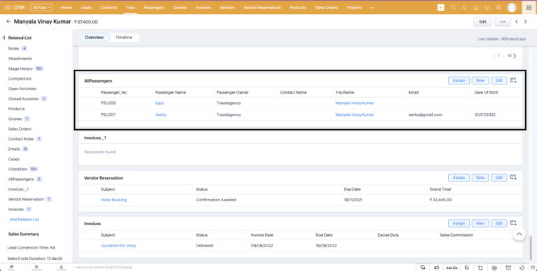 In a Travel CRM, passenger management encompasses the creation of customer profiles, overseeing bookings and reservations, tracking communications, and managing itineraries. These features are designed to elevate the travel experience and ensure customer satisfaction. on.