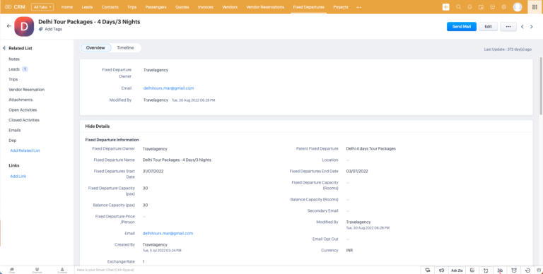 The Travel CRM is specifically designed to flawlessly map out fixed departure trips. Now, you can delineate your fixed departures with details such as start date, end date, maximum booking capacity for passengers and accommodations, among other features.