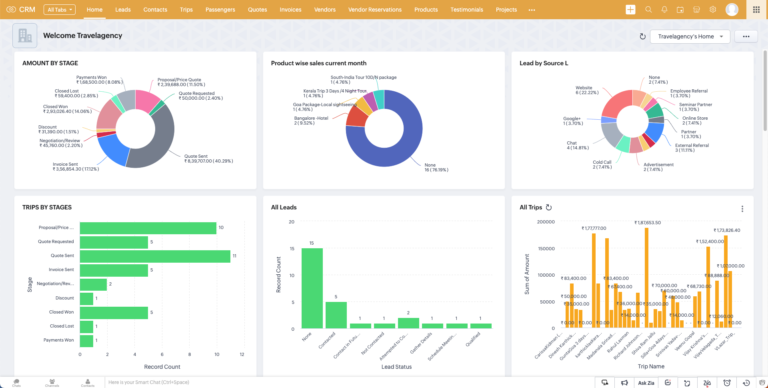Zoho offers an all-inclusive solution for travel agencies, facilitating smoother operations, improved customer interactions, and elevated efficiency through a single, intuitive platform.